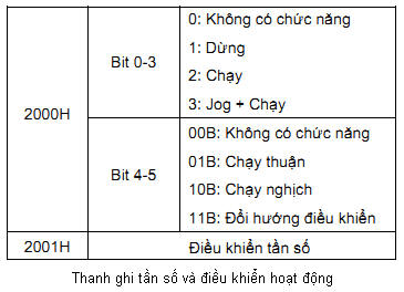 Các thanh ghi liên quan: (thao khảo chương 12 – VFD2000 User Manual)