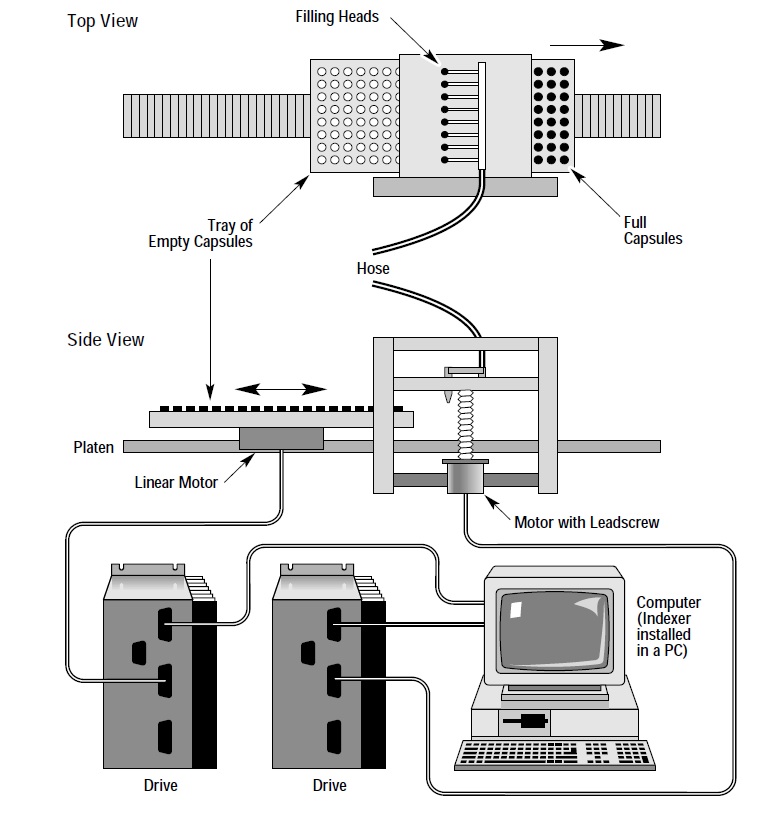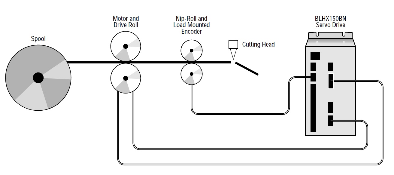 Applications in which a continuous web, strip, or strand of material is being indexed to length, most often with pinch rolls or some sort of gripping arrangement. The index stops and some process occurs (cutting, stamping, punching, labeling, etc.).