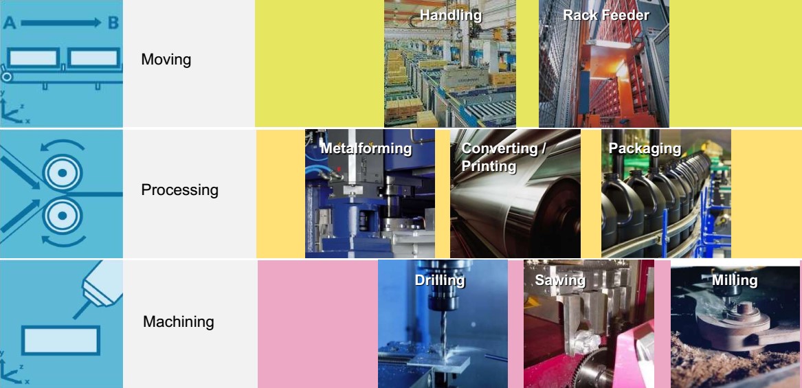 SINAMICS S120 được dùng trong rất nhiều ứng dụng điều khiển như: