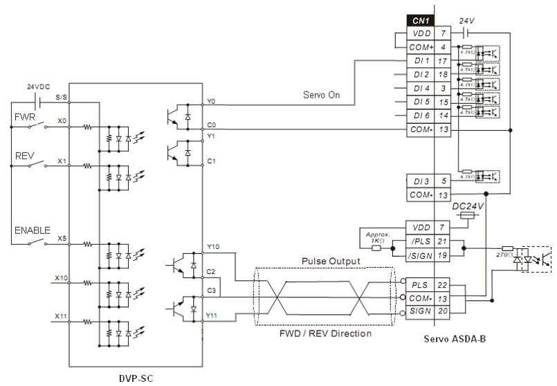 Chương trình demo chi tiết cách kết nối, cài đặt, vận hành cho ứng dụng servo điều khiển vị trí được điều khiển phát xung bởi plc Delta.
